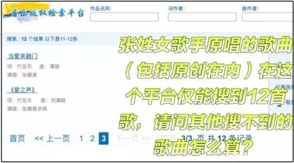 中国音乐著作权协会认证显示,张碧晨作为演唱者登记的歌曲仅有12首,作为词曲原创登记的歌曲竟然是零?