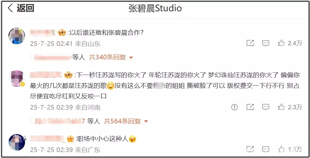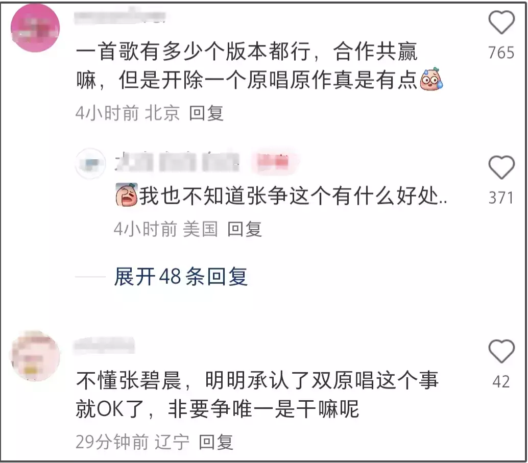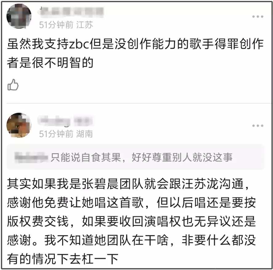 在张碧晨方声明评论区,就有网友质疑,张碧晨作为演唱者和词曲创作者争原唱,很容易影响非创作型歌手的发展
