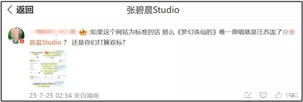 不过经过网友验证,发现张碧晨方的说法自相矛盾,他们一边强调张碧晨是《年轮》唯一原唱,一边承认《梦幻诛仙》是张碧晨和汪苏泷双原唱,但在著作权协会认证平台上,《梦幻诛仙》只登记了汪苏泷演唱者版本,搜不到张碧晨版。